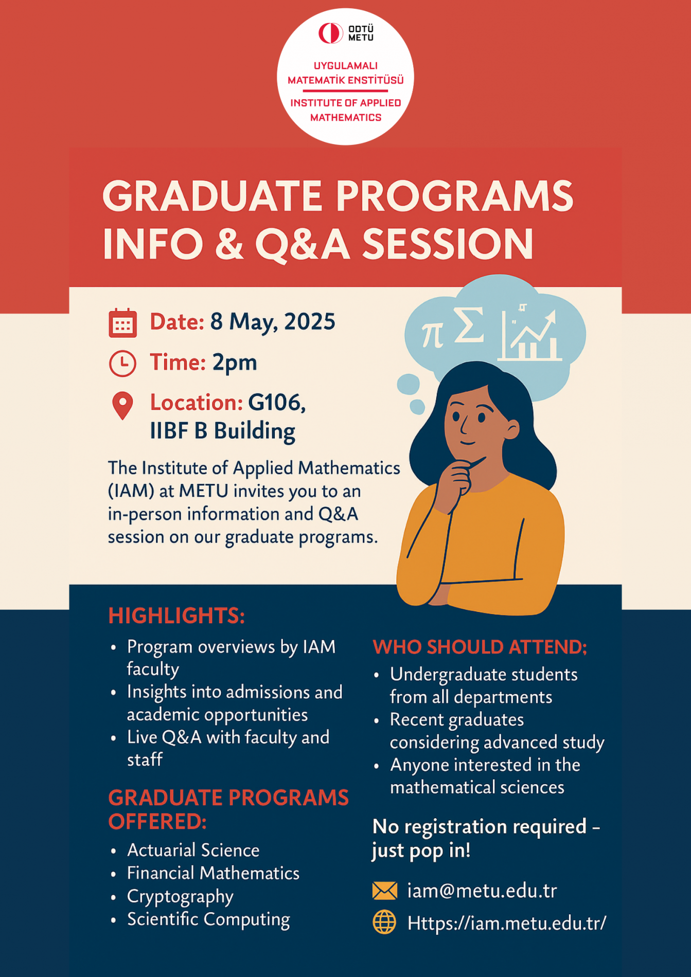 The Institute of Applied Mathematics (IAM) at METU invites you to an in-person information and Q&A session on our graduate programs.